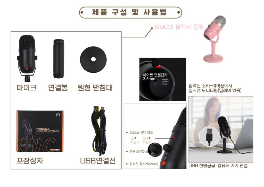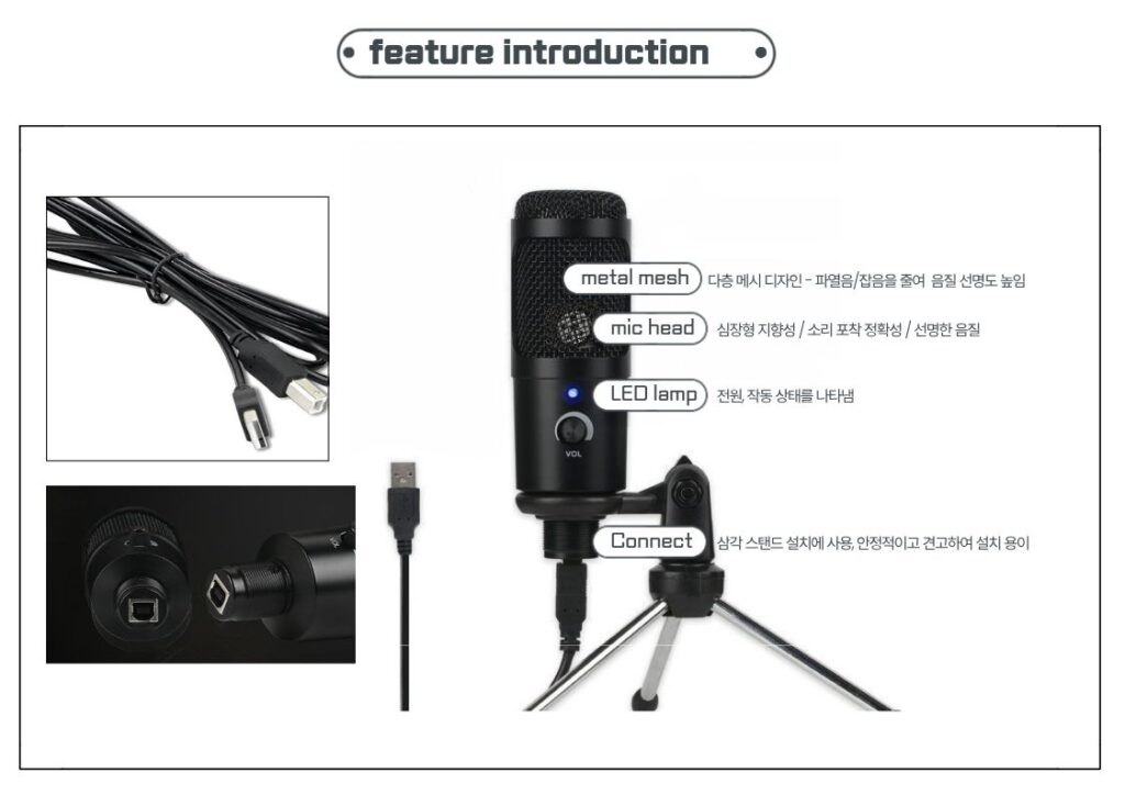 특징 – USB 마이크 데스크탑 컴퓨터 적용 가능