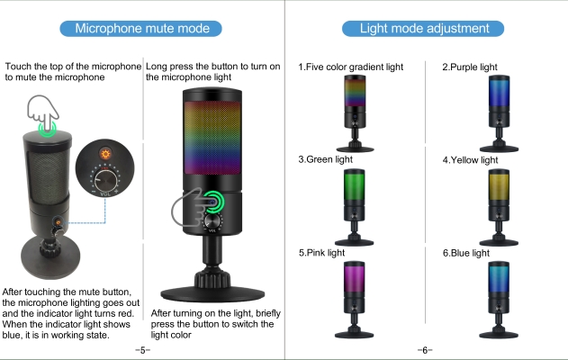 RGB 조명 Color 5가지 (Green, Purple, Sky, Yellow, Blue)
