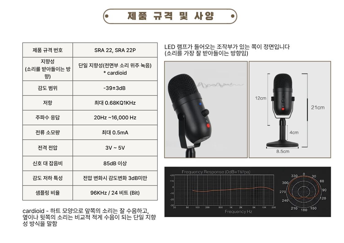 1. 작은 소리를 캐치하는 능력이 일반적으로 동일 가격일 때, 다이나믹 마이크(타사 기준)보다 뛰어나요.